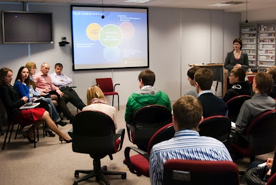 5. Проводиться постійний моніторинг програм розвитку для студентів, успішним прикладом яких є участь в програмі літнього стажування Aspire в компанії Phillip Morris Ukraine у липні-серпні цього року. Стажування включало 4 стадії: відбір, підготовчу (теоретичну), практичну та завершальну. Відбір студентів проходив у два етапи: шляхом конкурсу резюме та співбесіди. За результатами яких по всій Україні було відібрано 70 найкращих, в тому числі 9 осіб в Південно-Західному регіоні (Хмельницька, Тернопільська, Вінницька, Рівненська та Чернівецька область), двоє з них – студенти ХУУП: Онуфран Ірина та Білоус Олександр. Теоретична (підготовча) стадія включала в себе ряд тренінгів про маркетинговий кодекс компанії та міжнародні стандарти в даній галузі, а також з питань комунікації, презентації власного продукту, мерчандайзингу і тайм-менеджменту. Практична стадія полягала в тому, що стажер був закріпленим за співробітником і приймав безпосередню участь у реалізації його службових обов’язків. Завершальний етап проходив у Харкові і складався з екскурсії на тютюнову фабрику ФМУ, презентацій команд та нагородження учасниками. Варто відмітити не лише особистісний розвиток студентів-стажерів програми Aspire, але і можливість їх подальшого працевлаштування в компанії.