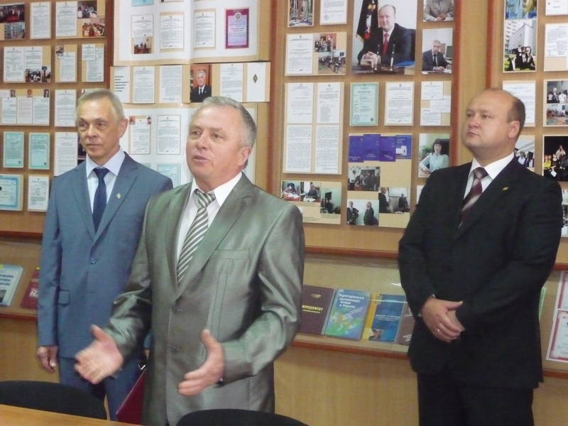 З вітальним словом перед усіма присутніми на відкритті музею, а це майже половина колективу університету, виступив ректор, кандидат історичних наук, доцент Олег Миколайович Омельчук. Також, особливо приємно було почути вітання з уст Валерія Григоровича Брицького (керуючого справами виконавчого апарату Хмельницької обласної ради, у минулому директора Шепетівського музею ім. М. Островського), Віктора Івановича Очеретянка (начальника управління освіти і науки Хмельницької облдержадміністрації) та Олександра Трохимовича Корнійчука (заступника директора Хмельницького центру перепідготовки та підвищення кваліфікації кадрів митних органів та кінології Державної митної служби України).
