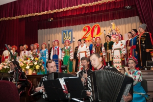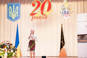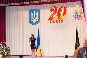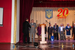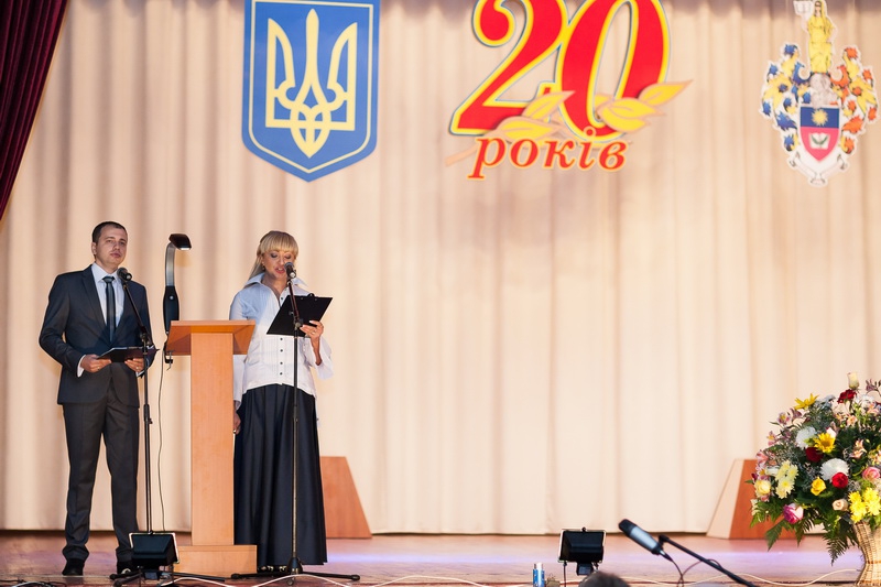 А після того, як на сцені з’явився запашний коровай і прозвучали святкові гімни, ведучі запросили до слдова ректора університету, кандидата юридичних наук, доцента О. М. Омельчука. У своєму виступі Олег Миколайович згадав найвизначніші події з життя університету за ці 20 років, поділився планами щодо нових здобутків та, в першу чергу, вручив Почесні відзнаки тим людям, котрі зробили значний внесок у становлення та розвиток Хмельницького університету управління та права.