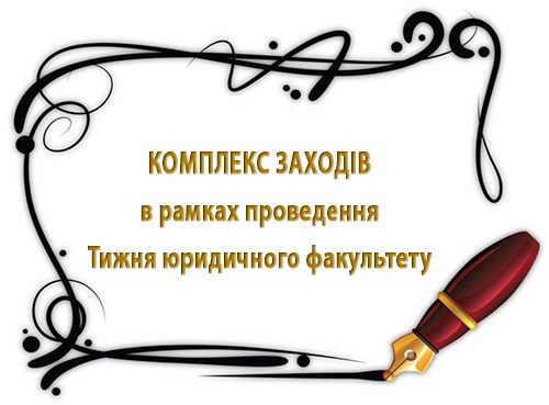 | Відкриття Тижня юридичного факультету, урочистості з нагоди Дня юриста | 8 жовтня | 15.00 | Корпус № 4, Ауд. № 201 |