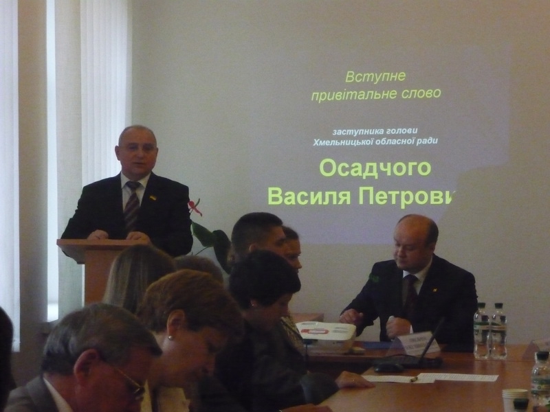 Учасників конференції вітали заступник голови Хмельницької обласної ради, кандидат технічних наук В. П. Осадчий та Криштоф Ющак, доктор гуманістичних наук, професор Поморської Академії (Польща).