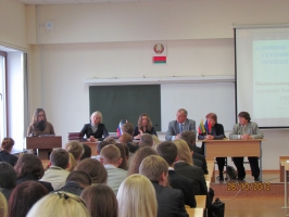 У складі президії були присутні визнані науковці сучасності, серед яких Ізабелла Іванівна Марціновіч, професор кафедри кримінального процесу і прокурорського нагляду, Заслужений юрист Республіки Білорусь, перша жінка-доктор юридичних наук у Білорусі. Вела пленарне засідання Ландо Дар’я Дмитрівна, доцент кафедри цивільного права, к. ю. н., доцент.
