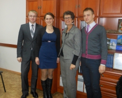 Юридична клініка нашого університету також бере активну участь у цьому процесі. Так, завдяки плідній співпраці з Хмельницькою обласною громадською організацією «Подільська правова ліга» 18 грудня цього року до юридичної клініки завітали представники цієї громадської організації: Місяць Віталій Петрович та Євдокімова Катерина Євгенівна, а також виконавчий директор канадської правозахисної організації Community Advocacy & Legal Centre (CALC) – Мішель Лірінг (Michele Leering). Метою візиту став обмін досвідом надання безоплатної правової допомоги вразливим верствам населення, адже CALC, як і юридична клініка нашого університету, займається саме таким видом діяльності. Проте, слід відзначити, що юридичні послуги в канадської правозахисній організації надають не студенти під керівництвом юрисконсультів, а штатні працівники, які є дипломованими юристами. Разом з тим, гостя відмітила, що в Канаді також існують студентські юридичні клініки, які функціонують при вищих навчальних закладах.