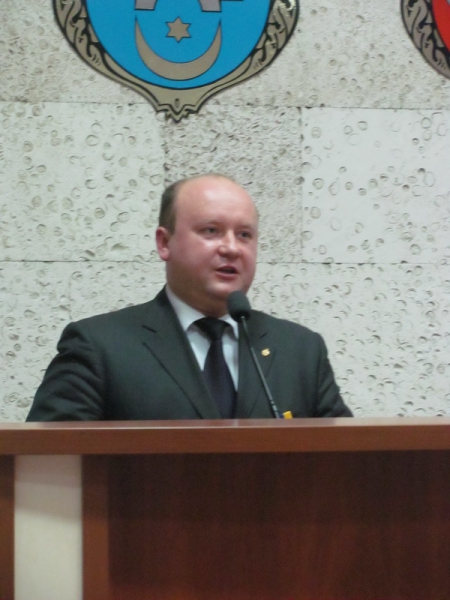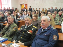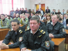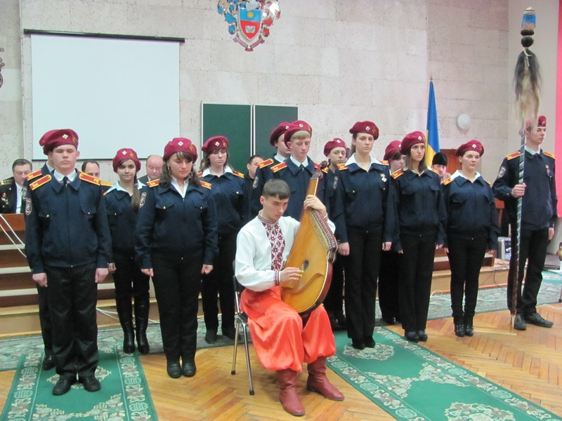 З вітальним словом перед присутніми виступив ректор університету, кандидат юридичних наук, доцент Олег Миколайович Омельчук. У почесній президії заходу також були присутні Генеральний осавул українського козацтва, головний отаман Міжнародної громадської організації Українського козацтва в Хмельницькій області Добровольський Юрій Михайлович, радник обласного отамана, отаман Старосинявського району Валерій Віталійович Грохольський, заступник обласного отамана, отаман Старокостянтинівського району Олійник Сергій Петрович, курінний бунчужний Староконстянтинівськокго осередку українського козацтва Рокицький Василь Іванович, генеральний інспектор українського козацтва Бараннік Ігор Федорович, священник Андрій Іванчик (м. Турка, Львівської обл.), священник Володимир Дейбук (м. Біла Церква, Київська обл.) духівник українського козацтва в Хмельницькій області, священник Михайло Ільницький.