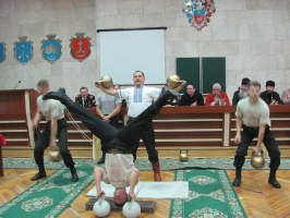 Між раундами вболівальників, учасників та почесну президію дивував своїми виступами спортивний клуб «Самсон» громадської організації Юних козаків «Побратими», на чолі з Ігорем Петровичем Русим. Хлопці зі своїм керівником запропонували глядачам дійсно феєричне дійство – тридцятикілограмові гирі у їхніх руках літали мов пушинки!