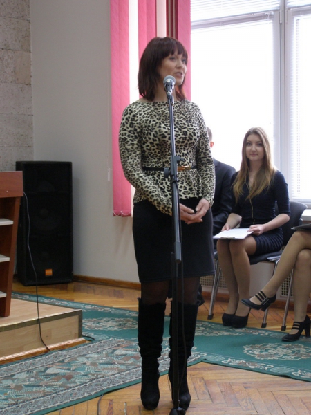 Напередодні свята в актовому залі центрального корпусу університету зібралася уся студентська та викладацька громада. З вітальним словом перед присутніми виступила декан факультету управління та економіки, кандидат економічних наук, доцент Наталя Петрівна Захаркевич. А для новообраної голови Профкому профспілки студентів університету Анни Царук виступ на святі став дебютним.