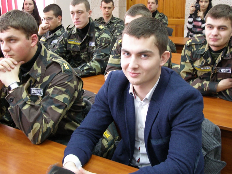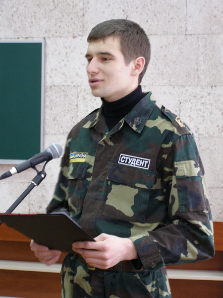 Всі чоловіки – захисники Вітчизни, та серед наших студентів є ті, для кого захист Батьківщини став ще однією професією. Саме тому, здобуваючи свою основну спеціальність, вони навчаються на військовій кафедрі підготовки офіцерів запасу. Тож, за поданням керівництва військової кафедри за успішне навчання за програмою підготовки офіцерів запасу та з нагоди Дня захисника Вітчизни, кращі курсанти військової кафедри були нагороджені почесними грамотами з рук першого проректор з наукової роботи, доктора історичних наук, доцента Леоніда Леонідовича Місінкевича. Від імені курсантів перед присутніми виступив студент 3-го курсу юридичного факультету Ястремський Костянтин.