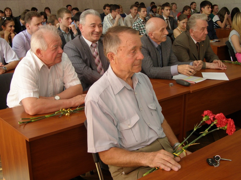Напередодні свята актова зала університету була переповнена студентами та викладачами. Цей день для усіх нас завжди був і буде особливим. Про страшні роки військових дій та нелегкий тягар післявоєнної відбудови у своєму слові згадав перший проректор університету з наукової роботи, доктор історичних наук Леонід Леонідович Місінкеавич. З особливим трепетом усі присутні слухали спогади учасника війни, заслуженого юриста України, доктора історичних наук, професора Радомира Івановича Кондратьєва.