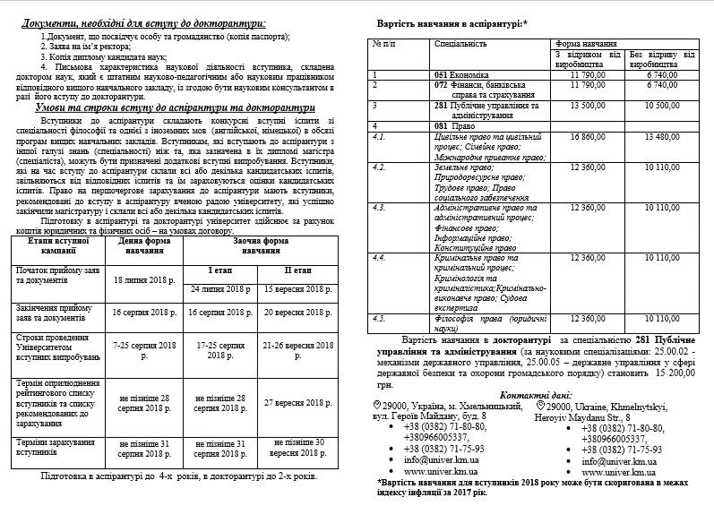 АСПІРАНТУРА ТА ДОКТОРАНТУРА ХМЕЛЬНИЦЬКОГО УНІВЕРСИТЕТУ УПРАВЛІННЯ ТА ПРАВА