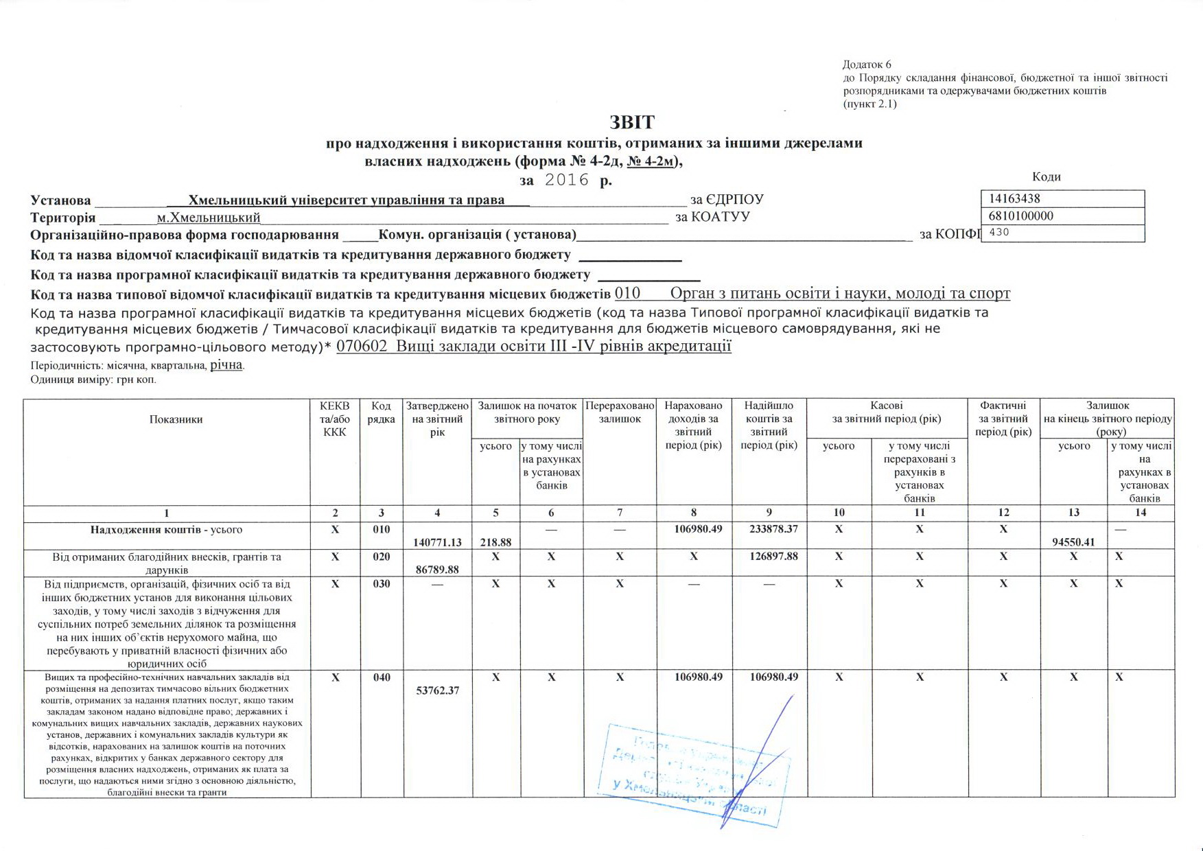 Звіт про надходження і використання коштів, отриманих за іншими джерелами власних надходжень (форма_4-2м)
