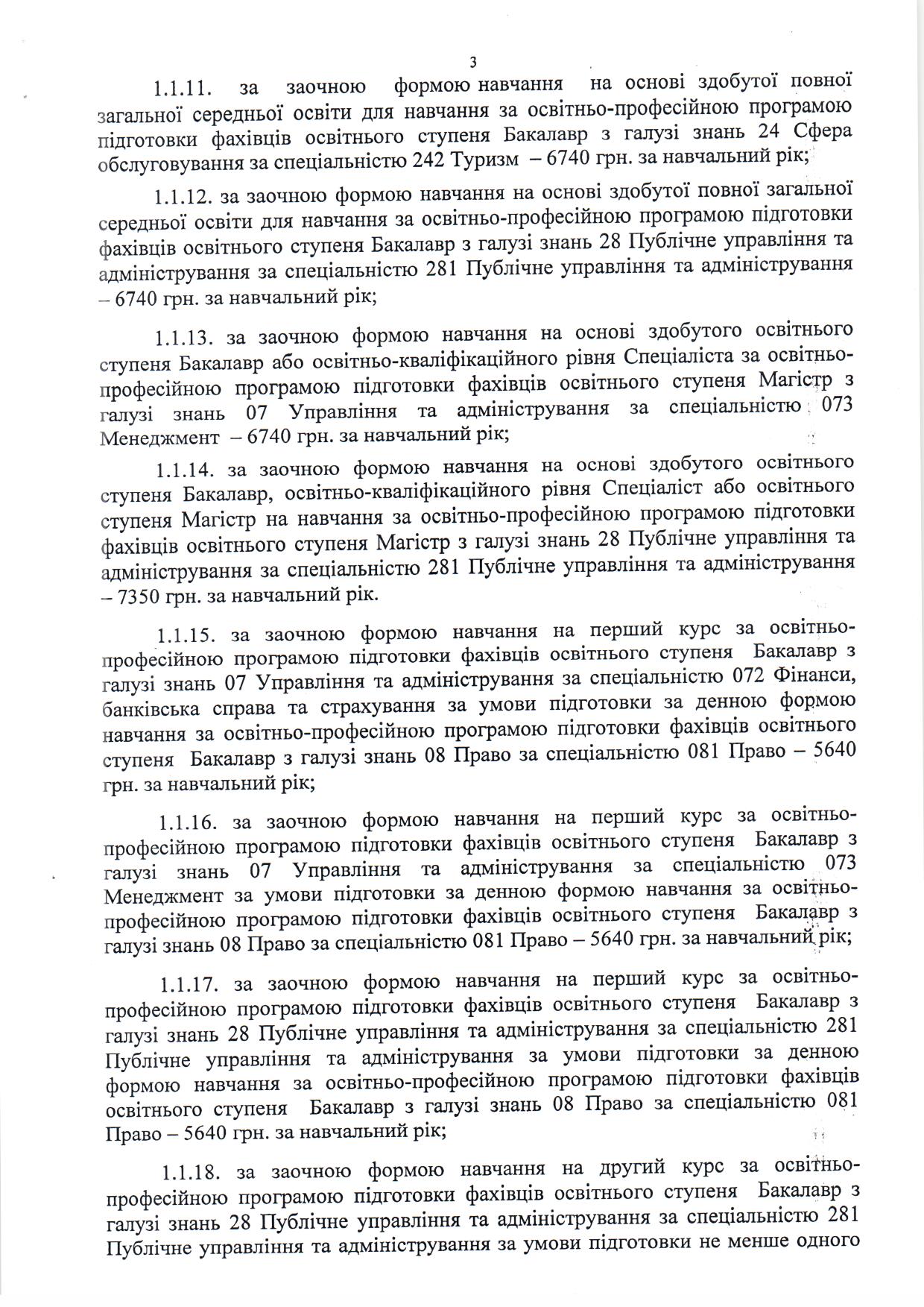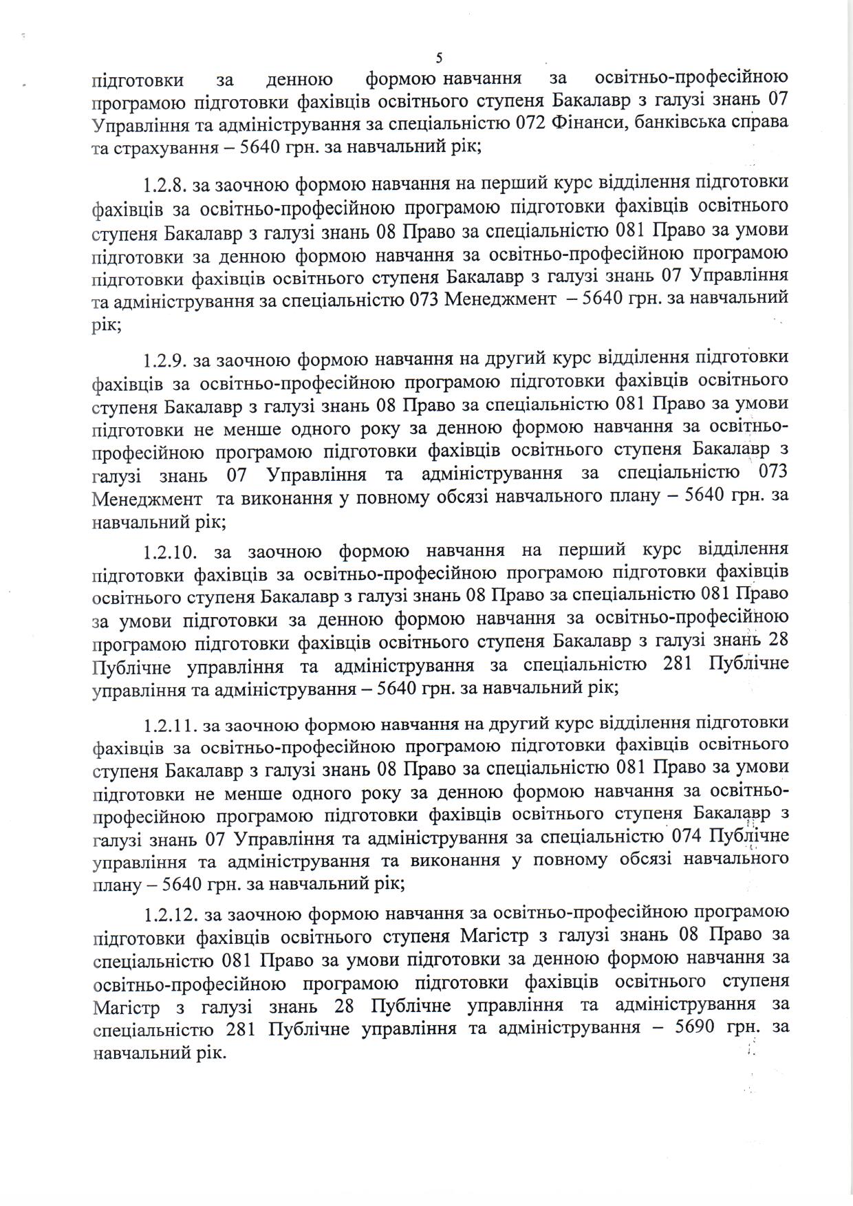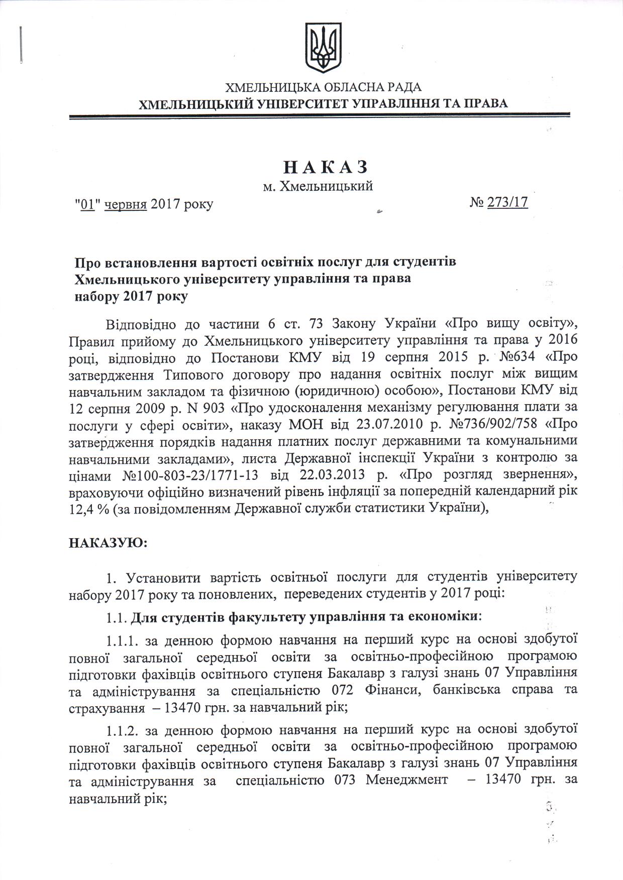 Наказ про встановлення вартості освітніх послуг для студентів набору 2017 року