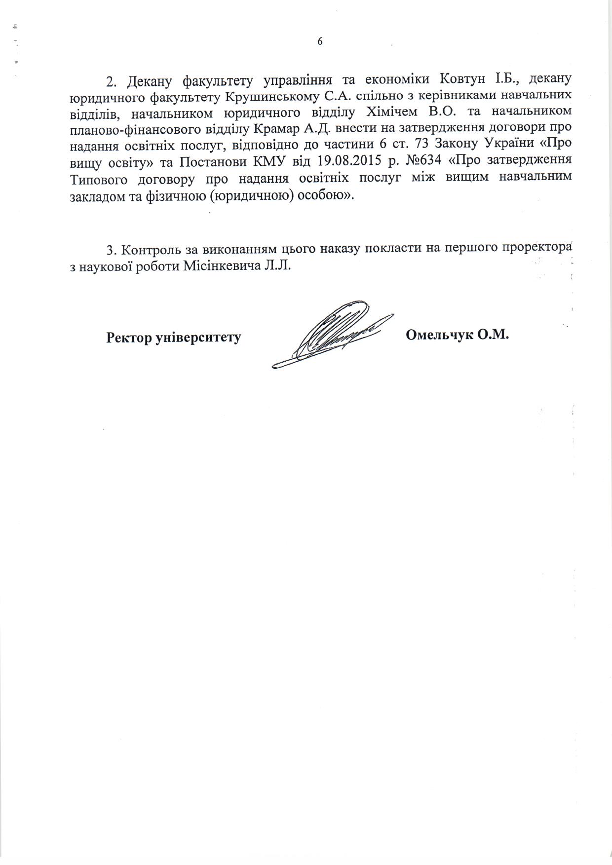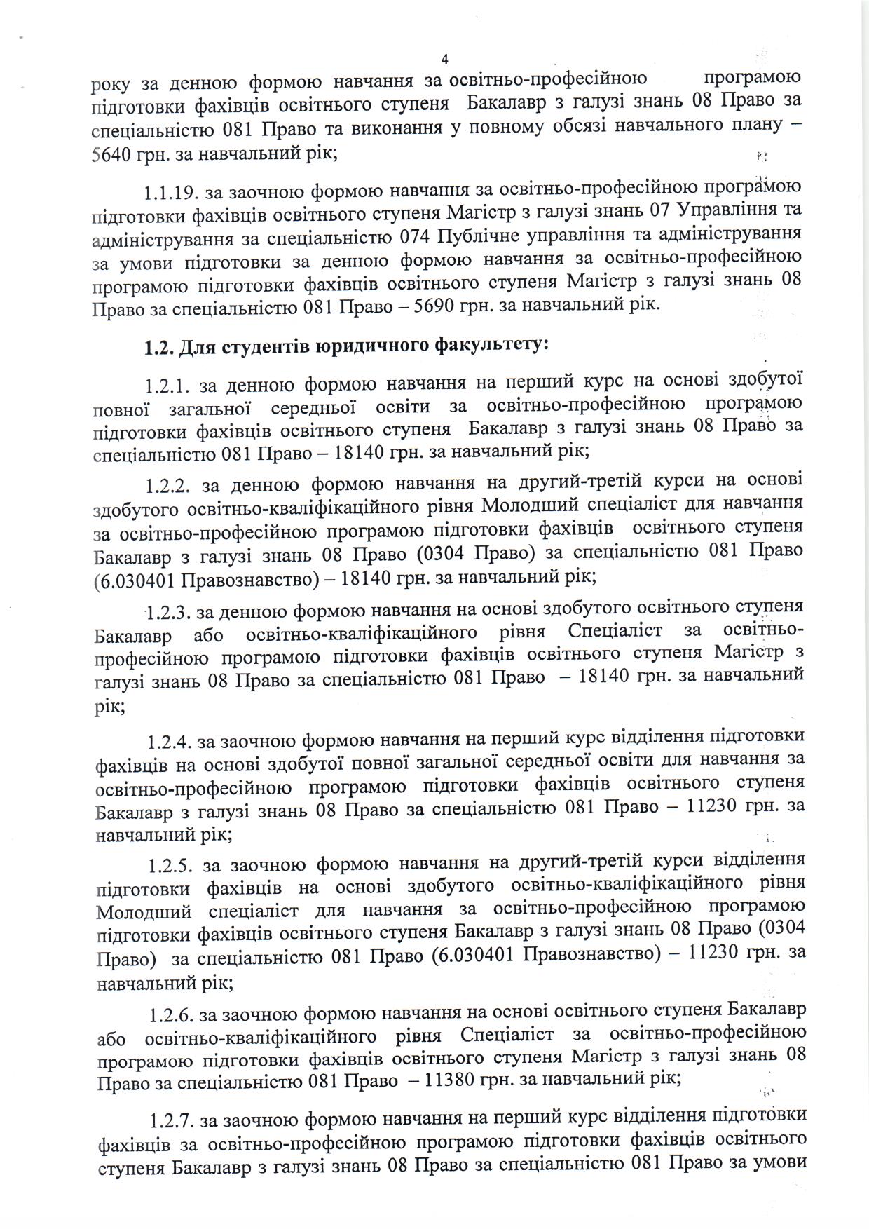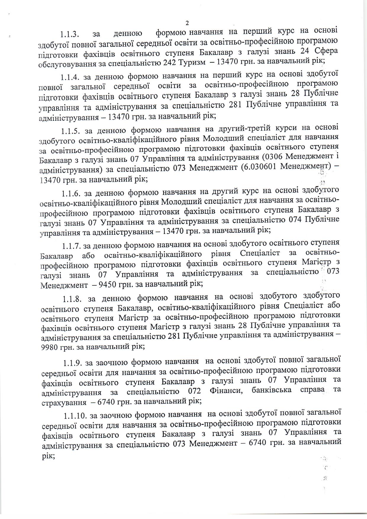 Наказ про встановлення вартості освітніх послуг для студентів набору 2017 року