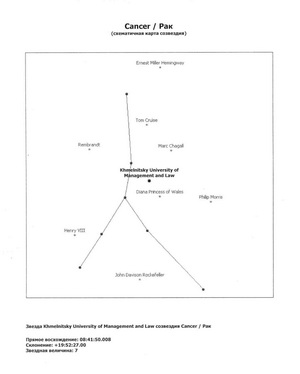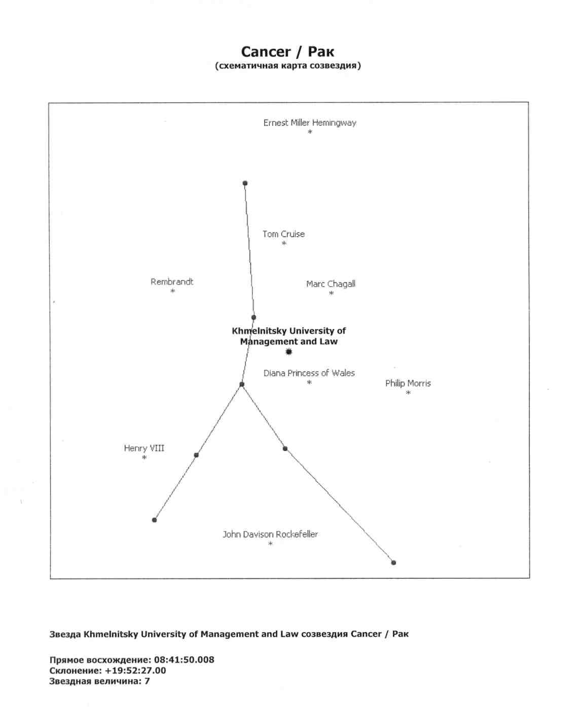 (схематична карта розміщення зірки Хмельницького університету управління та права в сузір’ї Рак)