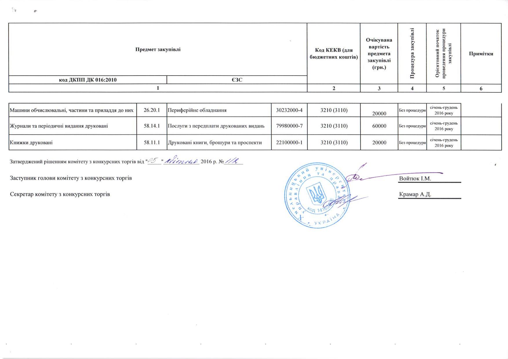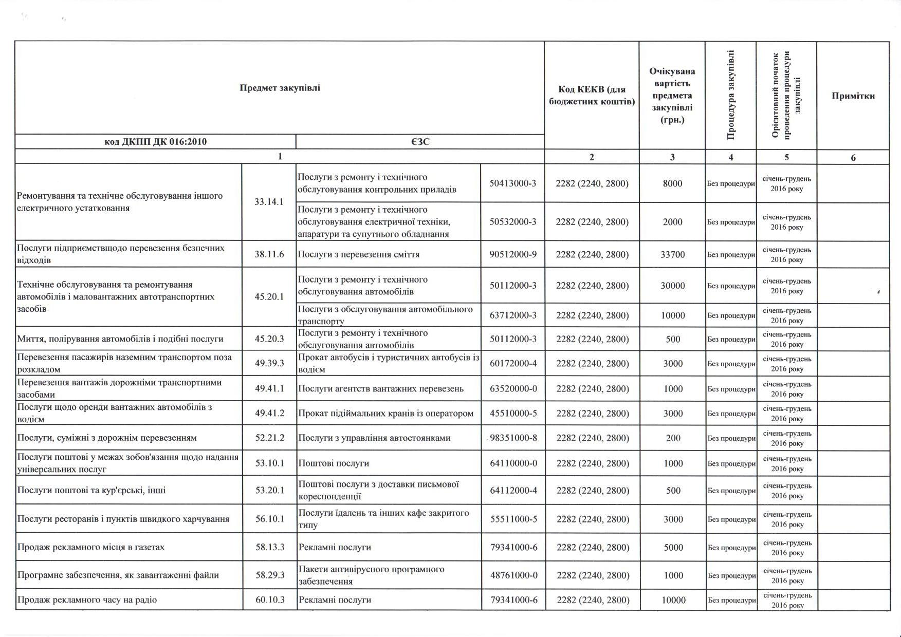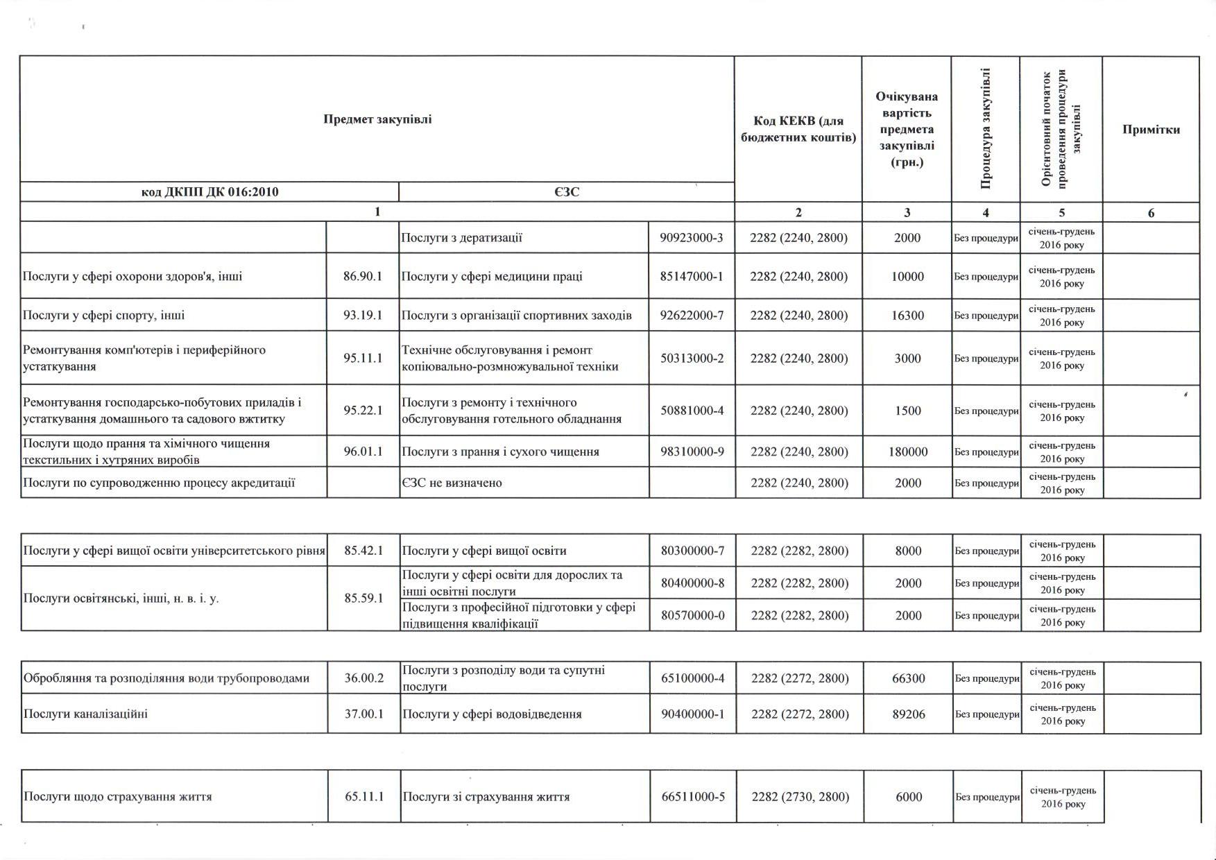 • Річний план закупівель на 2020 рік (Встановлення автоматичної пожежної сигналізації)