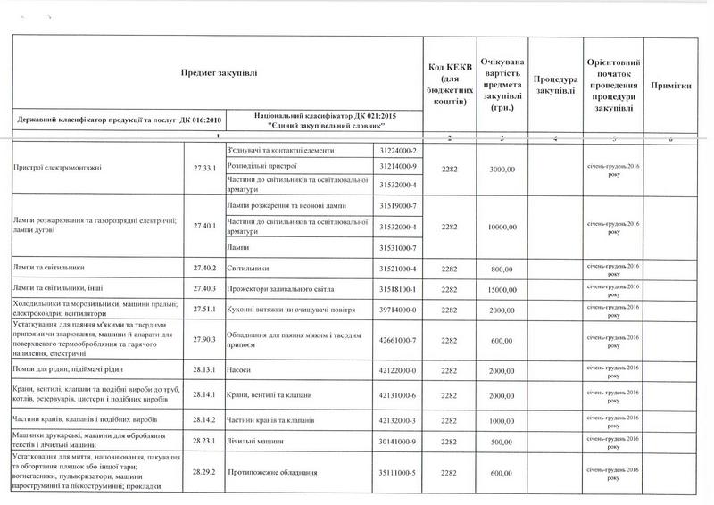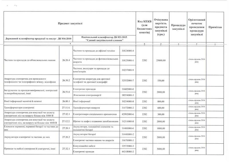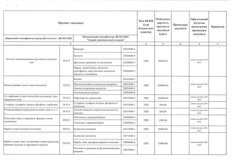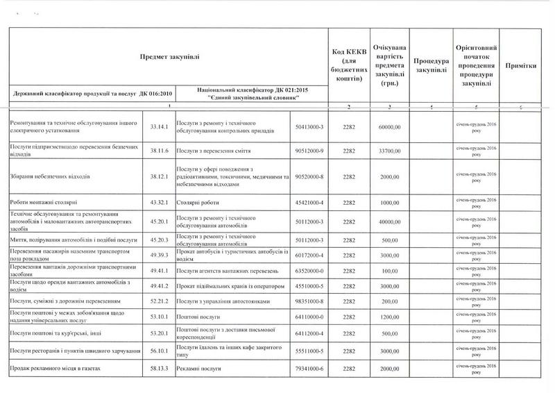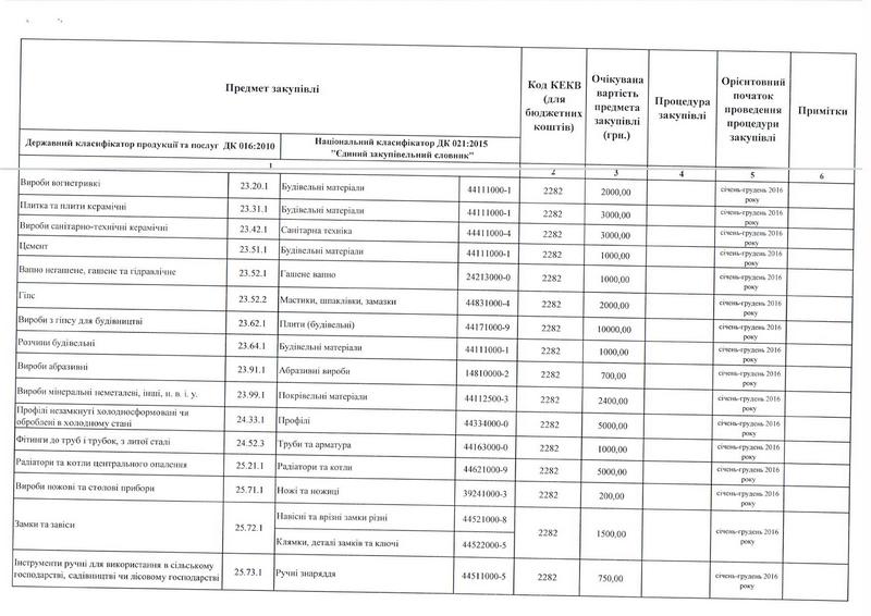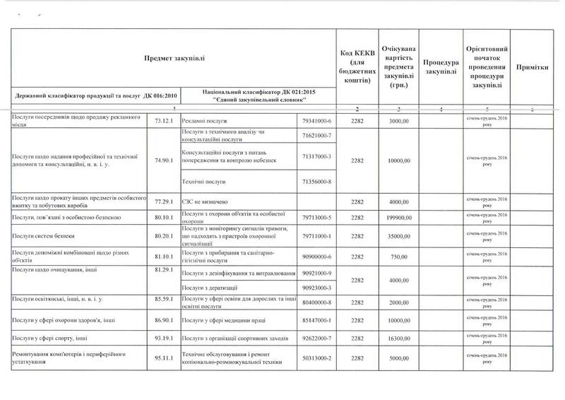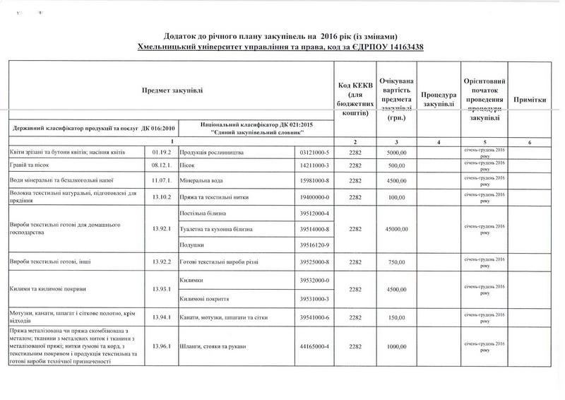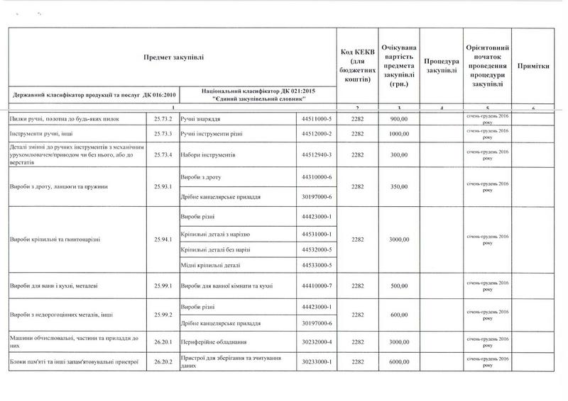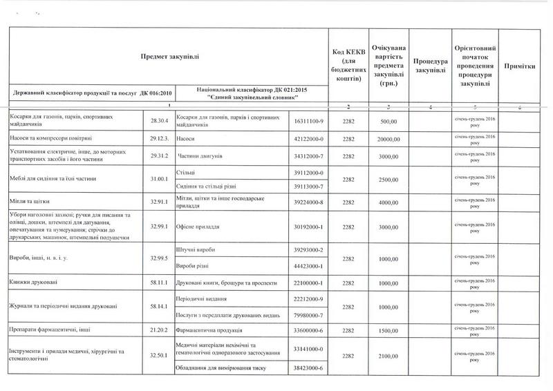 Додаток до річного плану закупівель на 2016р. із змінами.