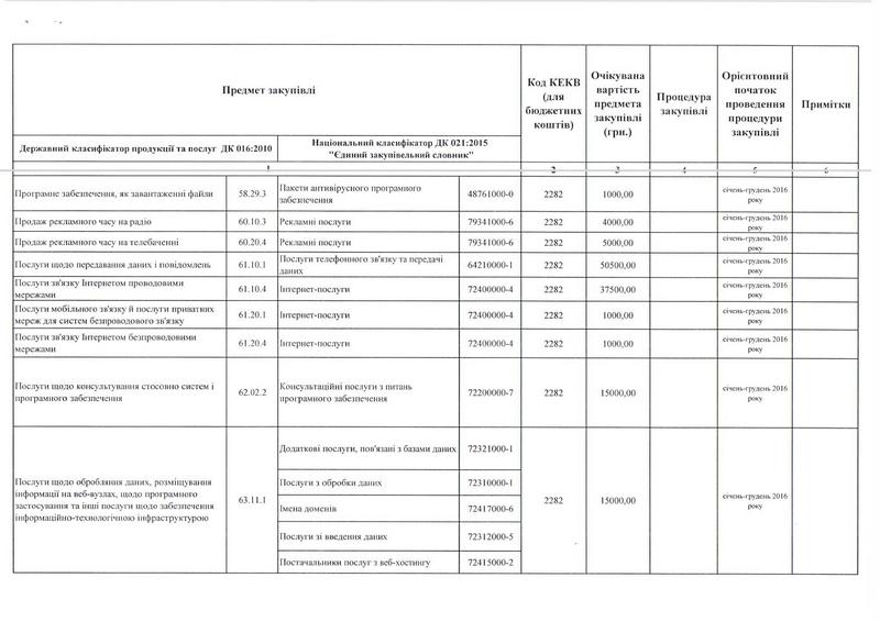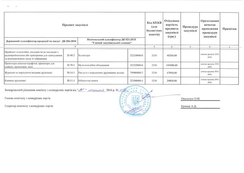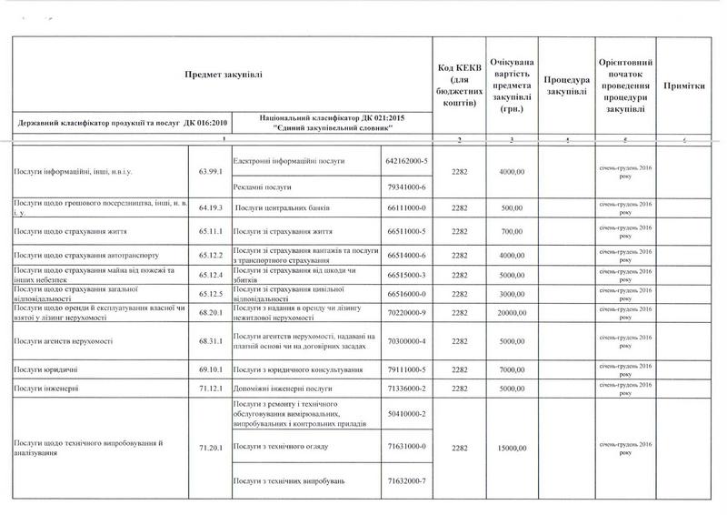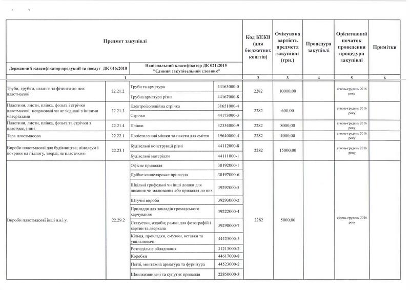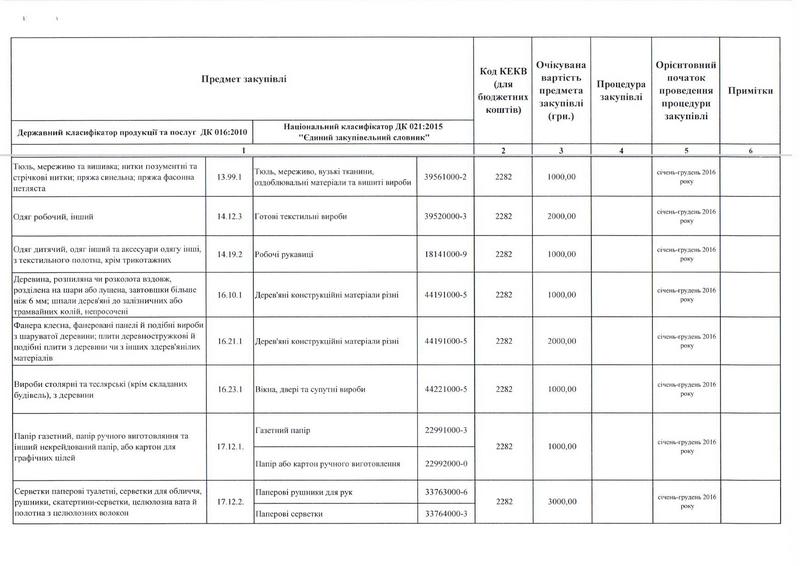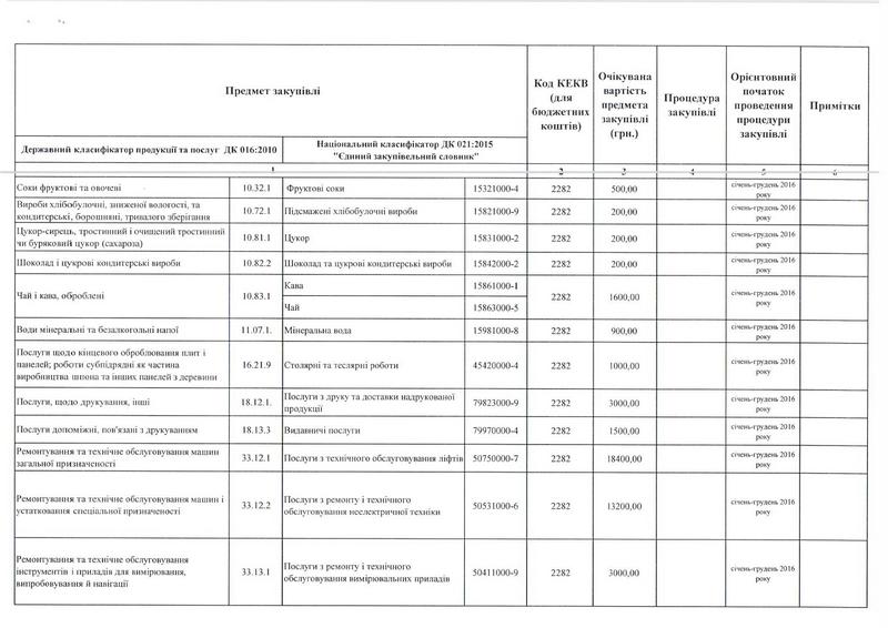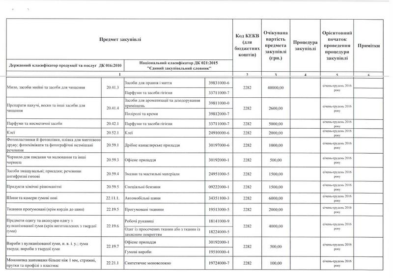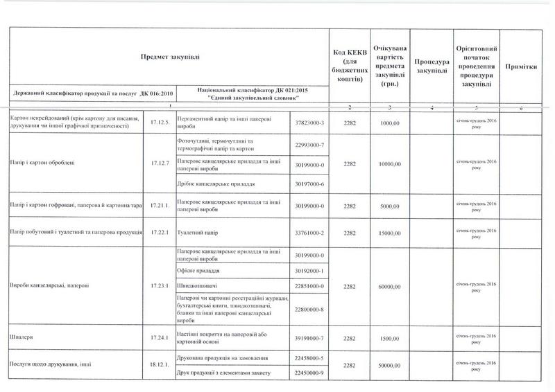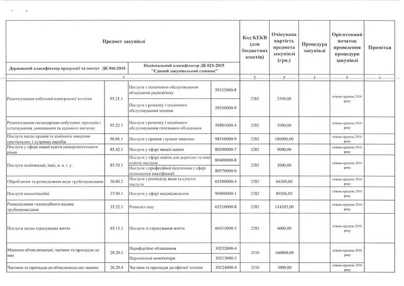 Додаток до річного плану закупівель на 2016р. із змінами.