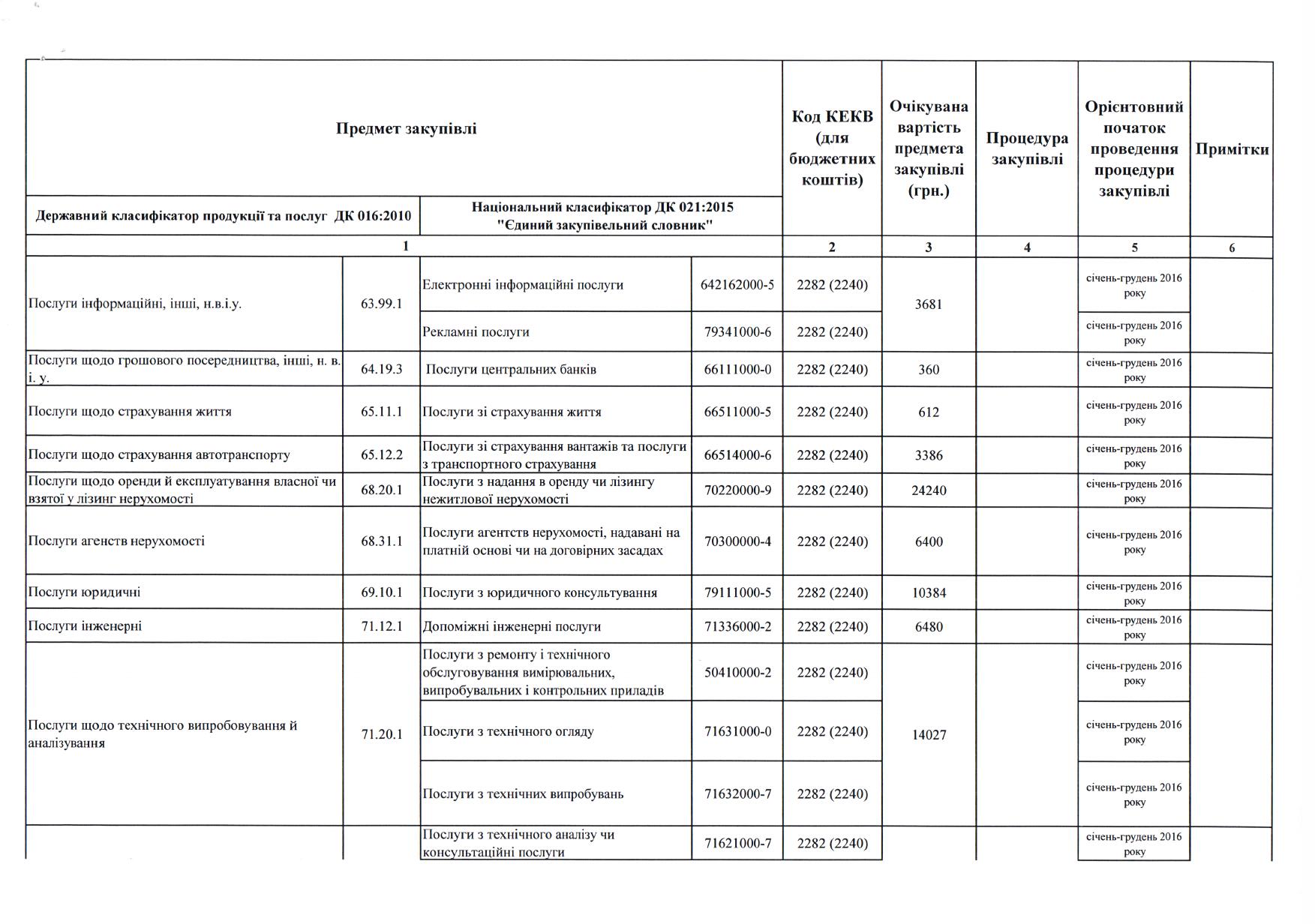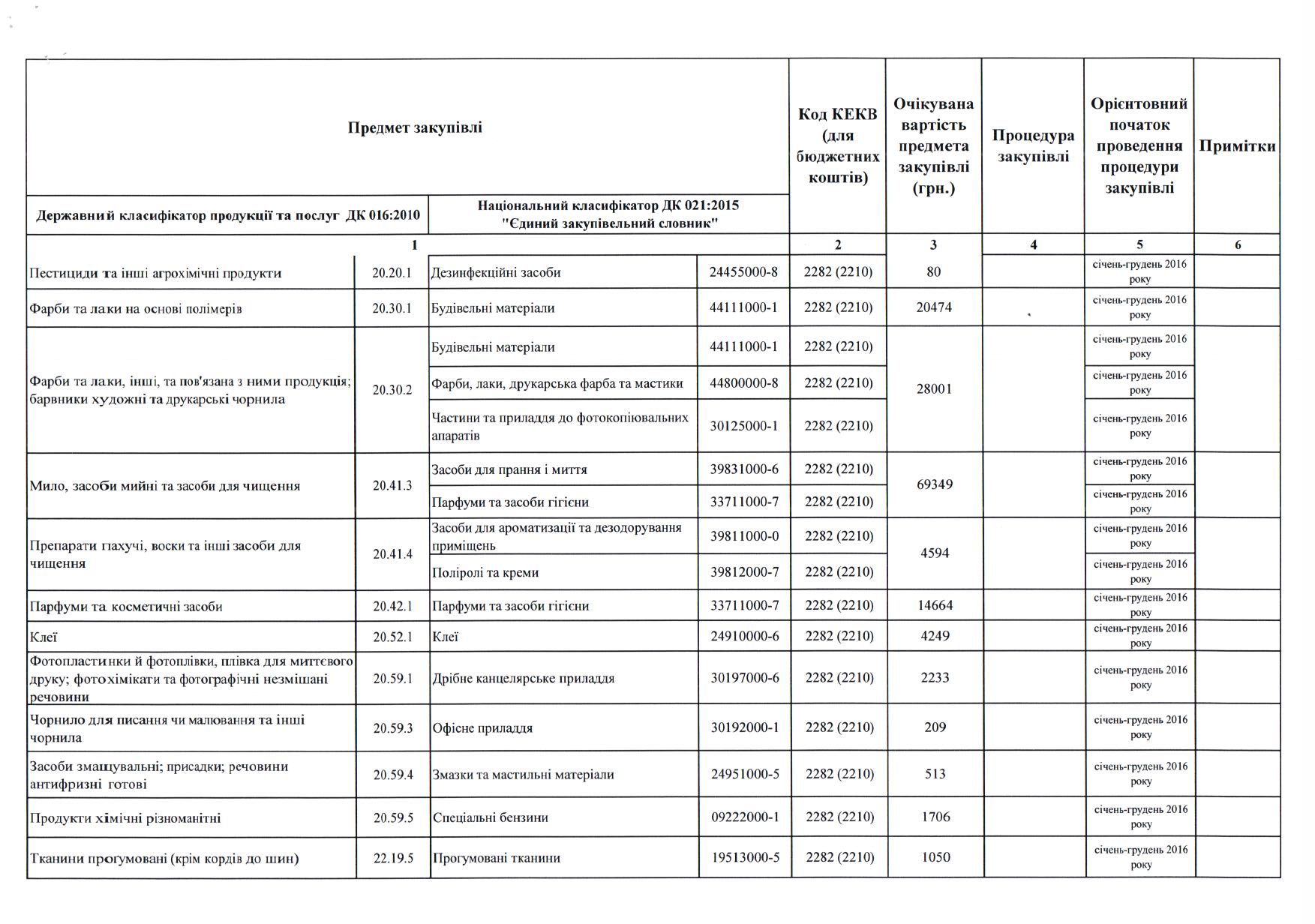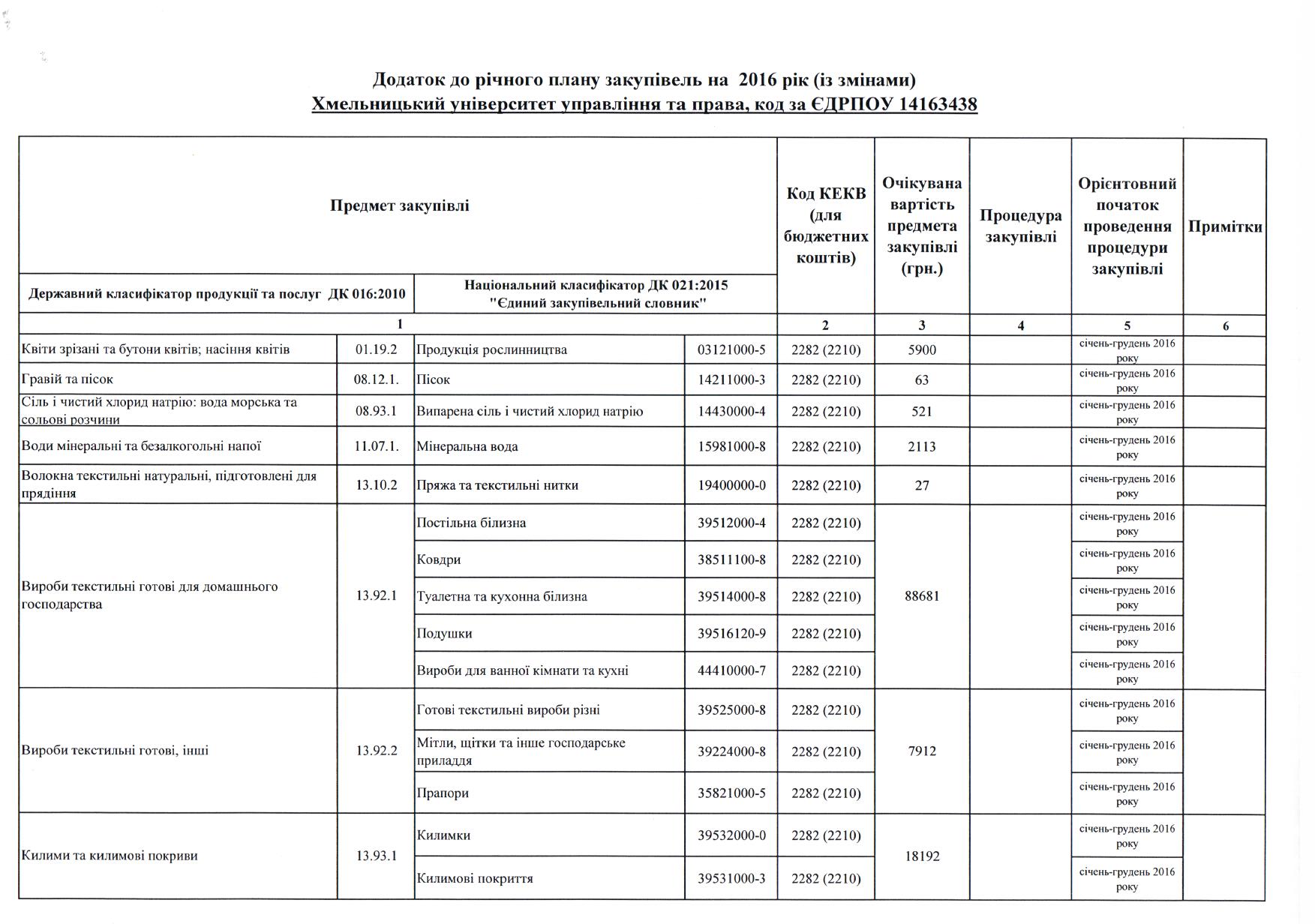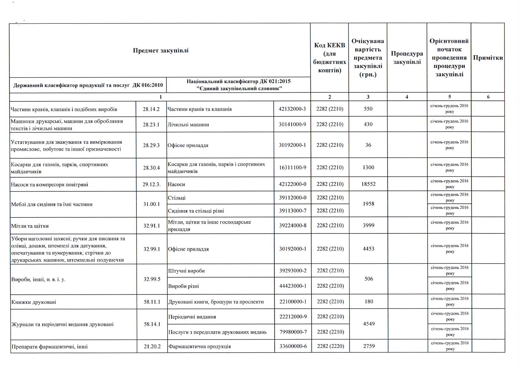 Додаток до річного плану закупівель на 2016р. із змінами.