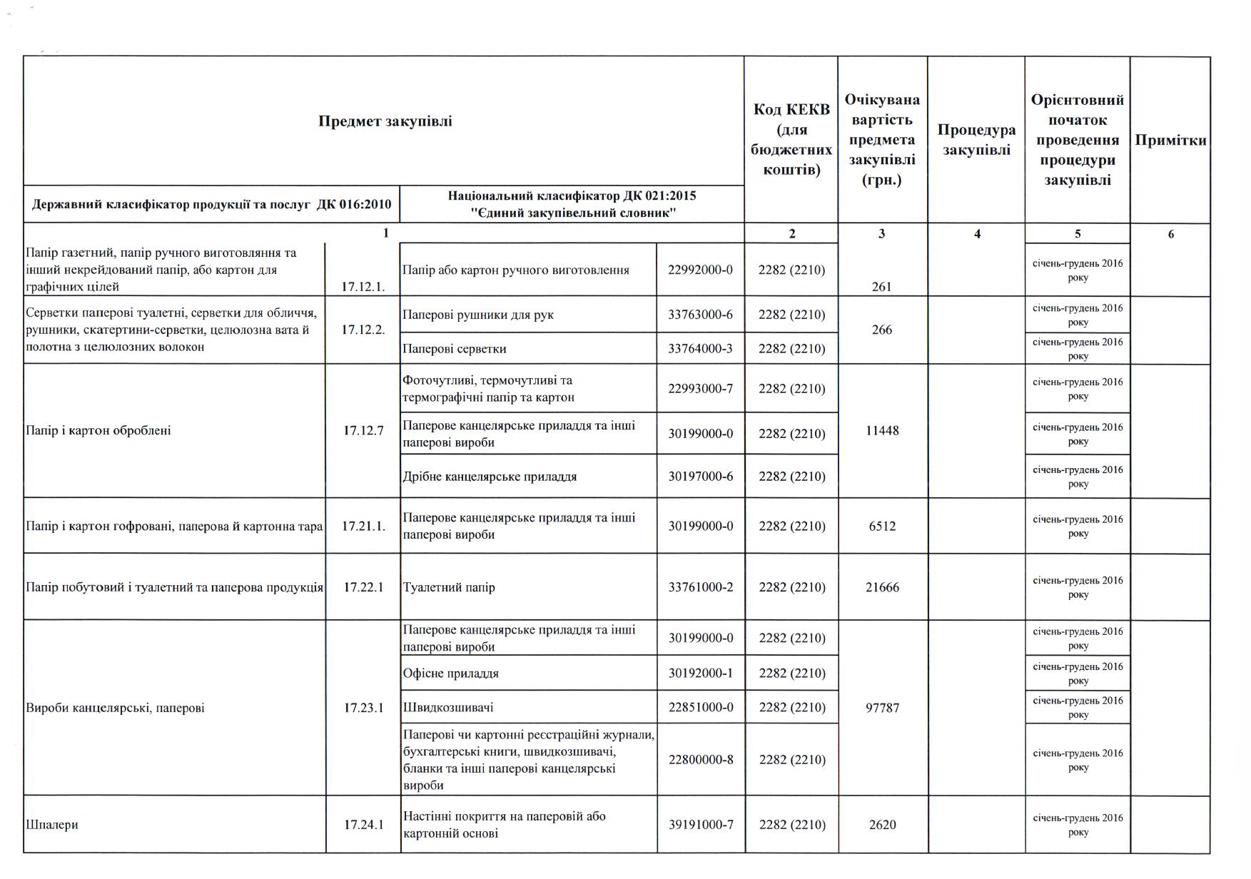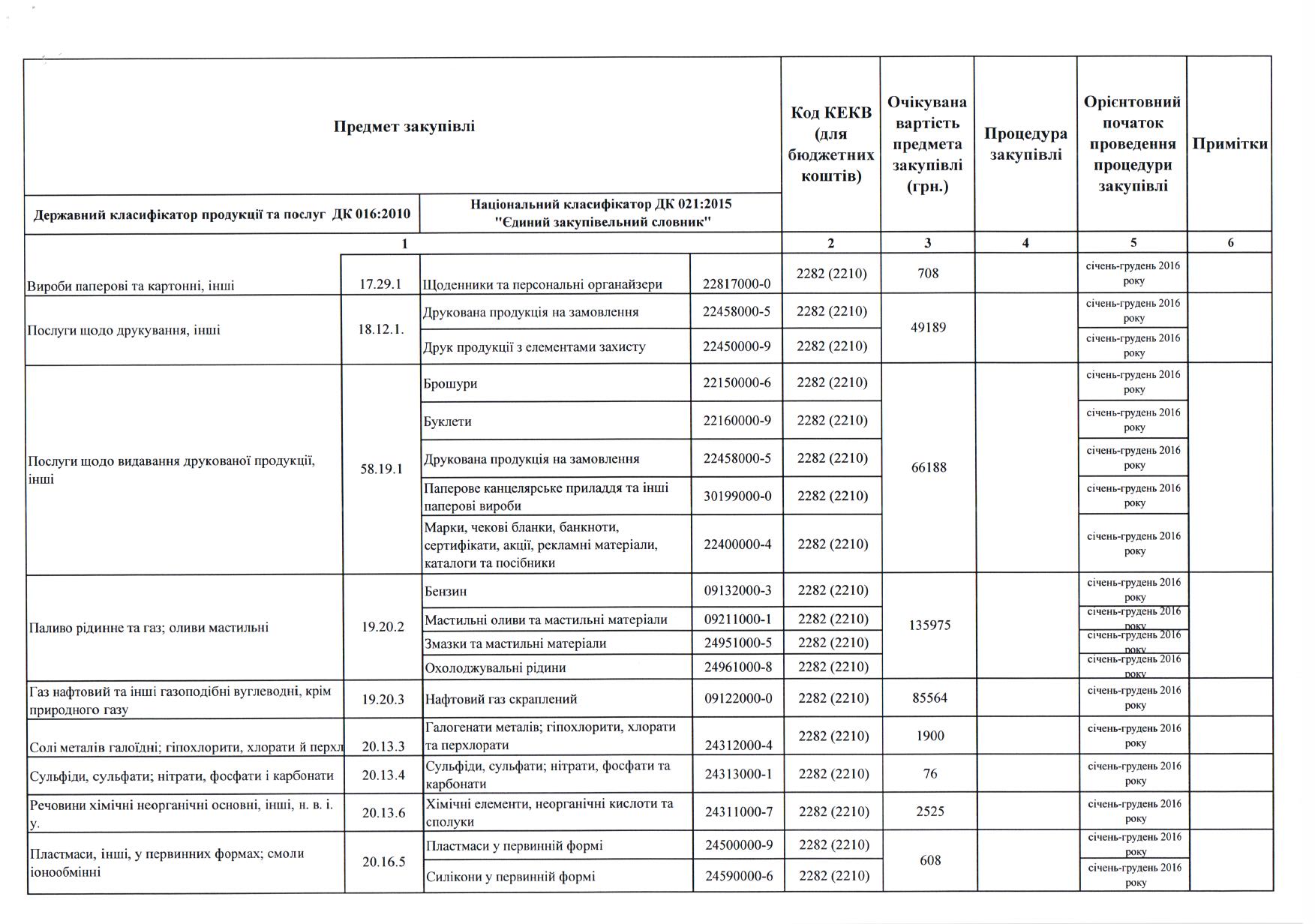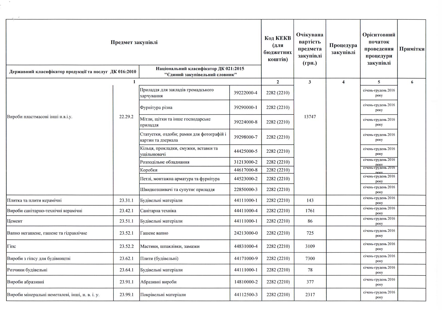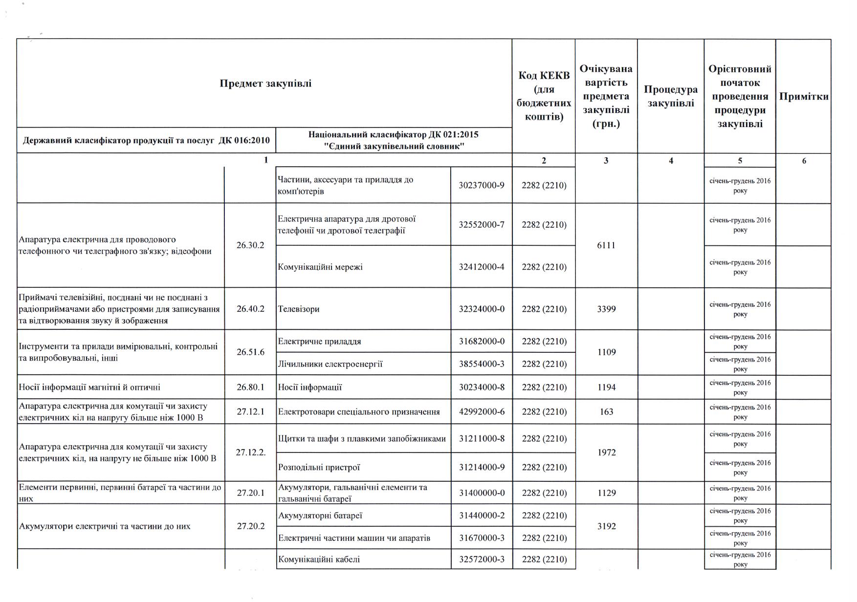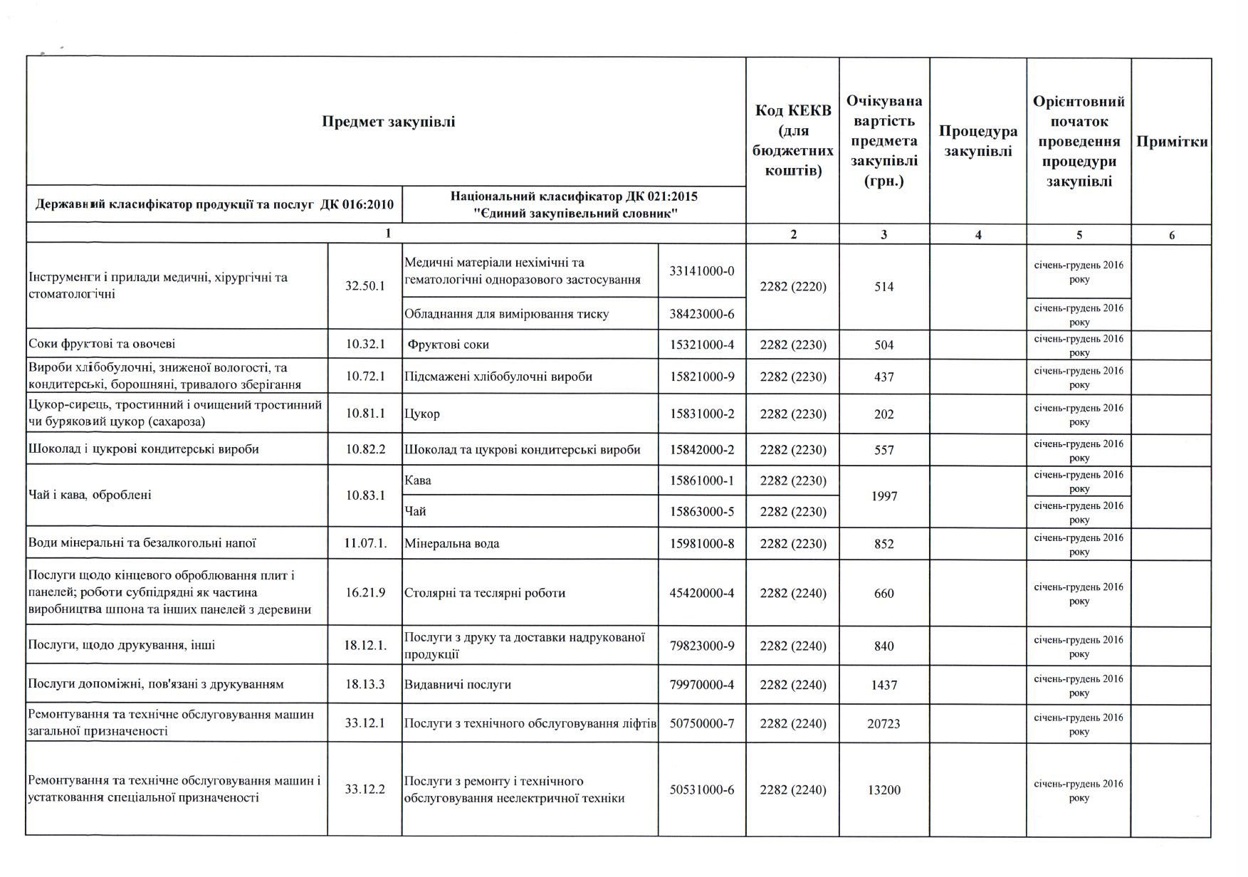 Додаток до річного плану закупівель на 2016р. із змінами.