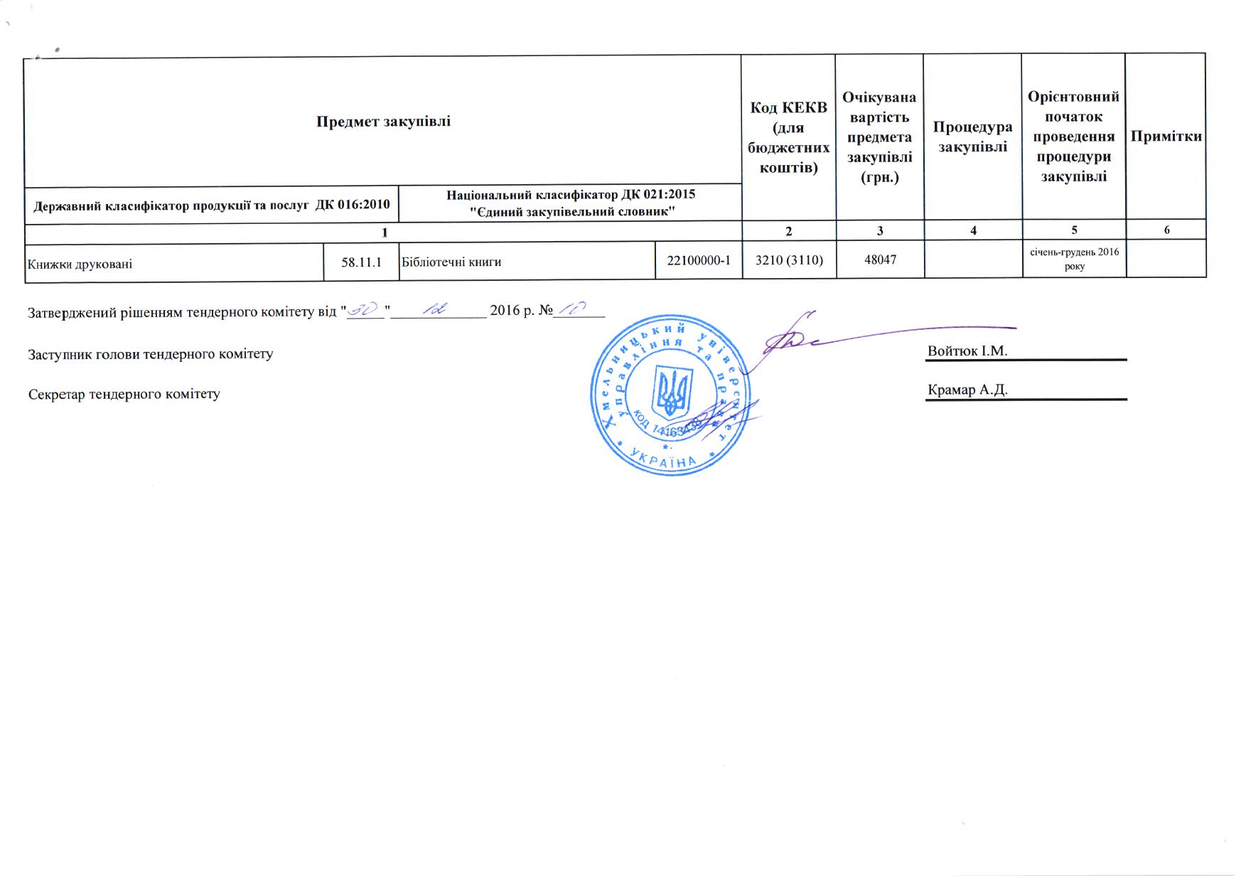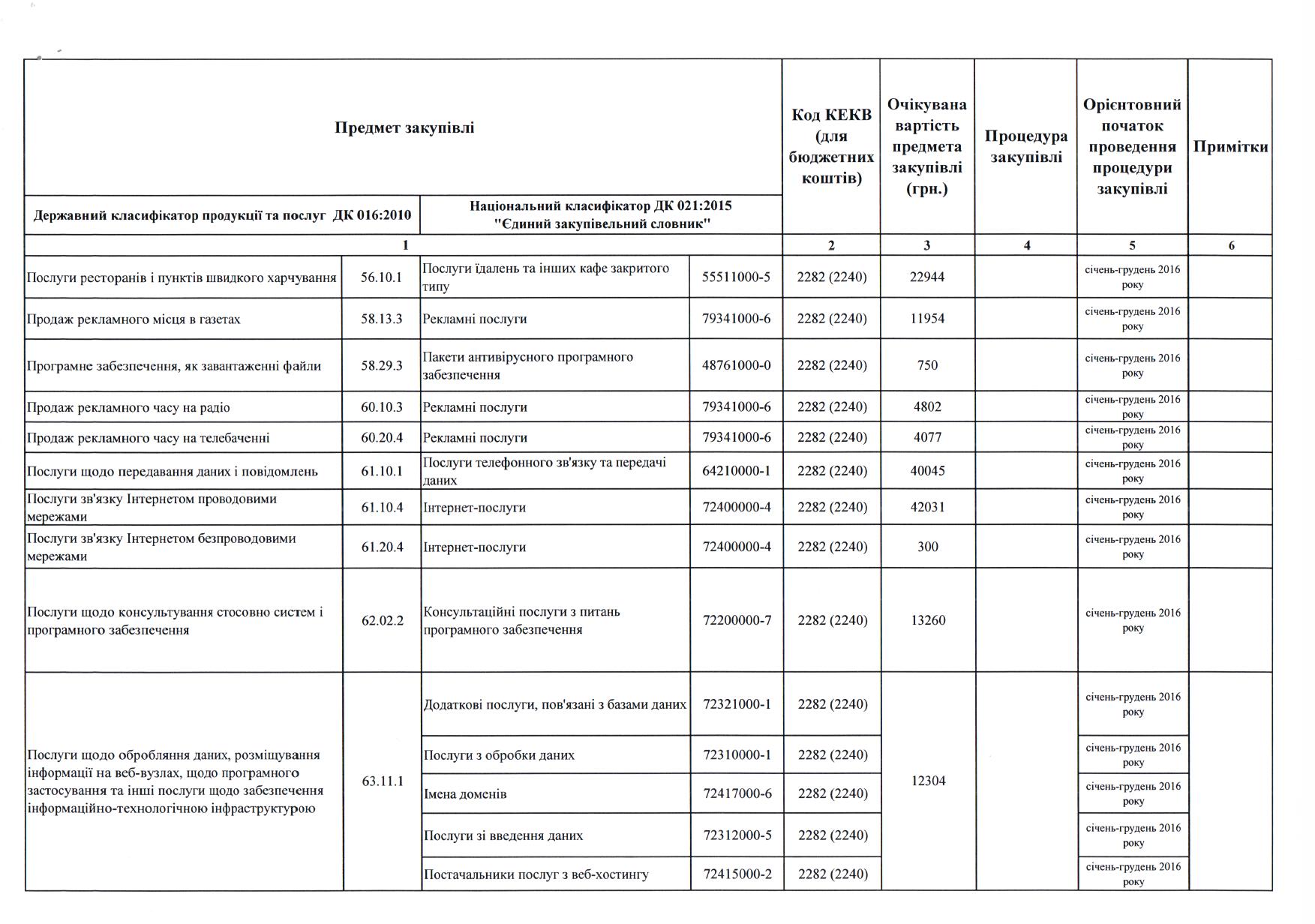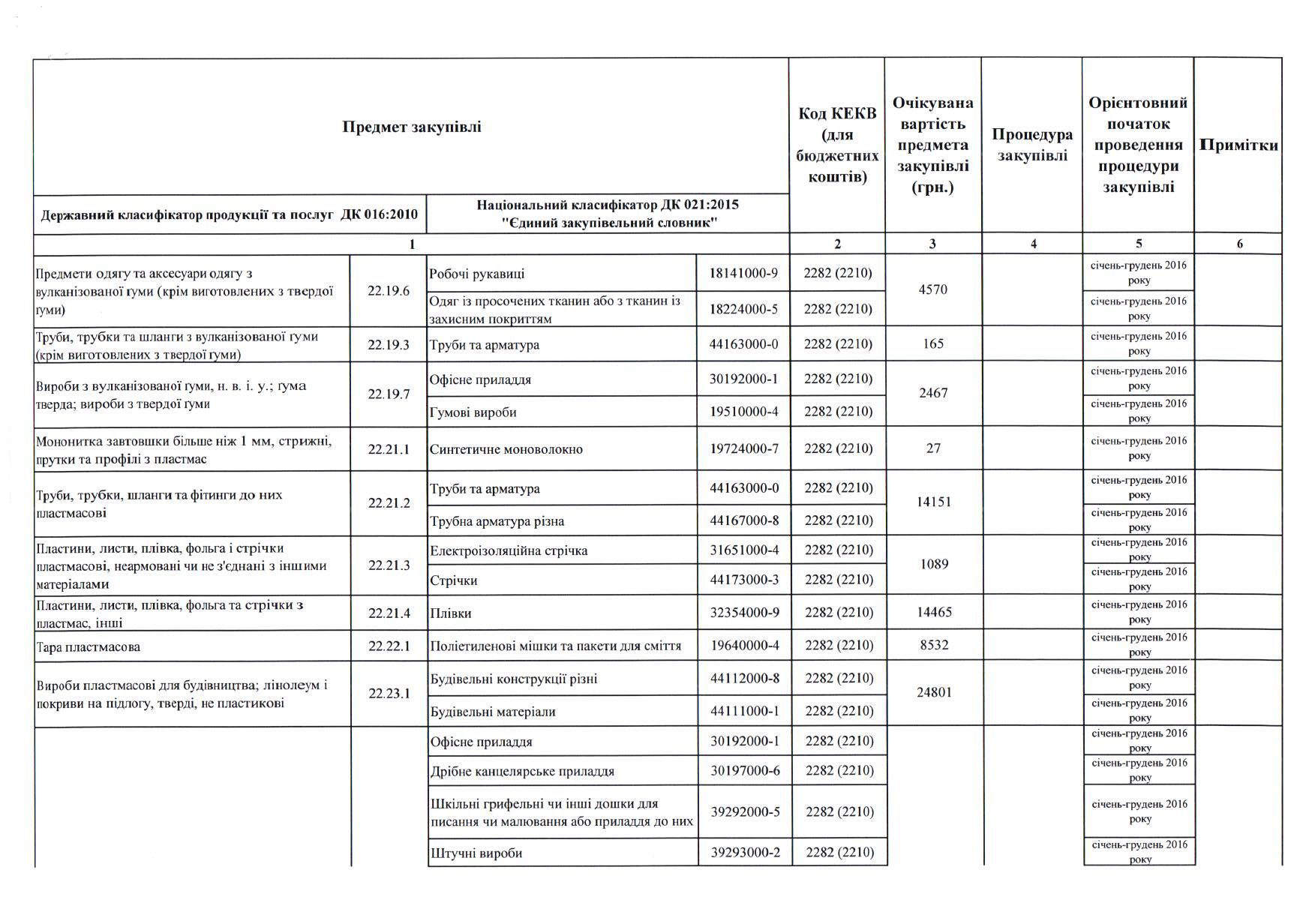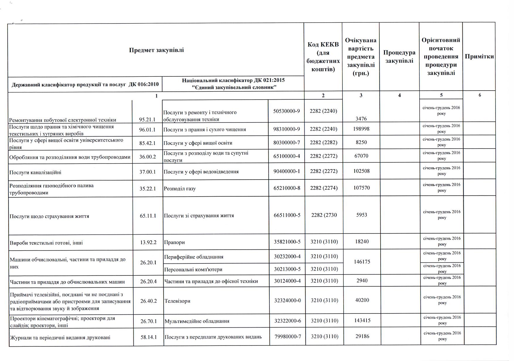 Додаток до річного плану закупівель на 2016р. із змінами.