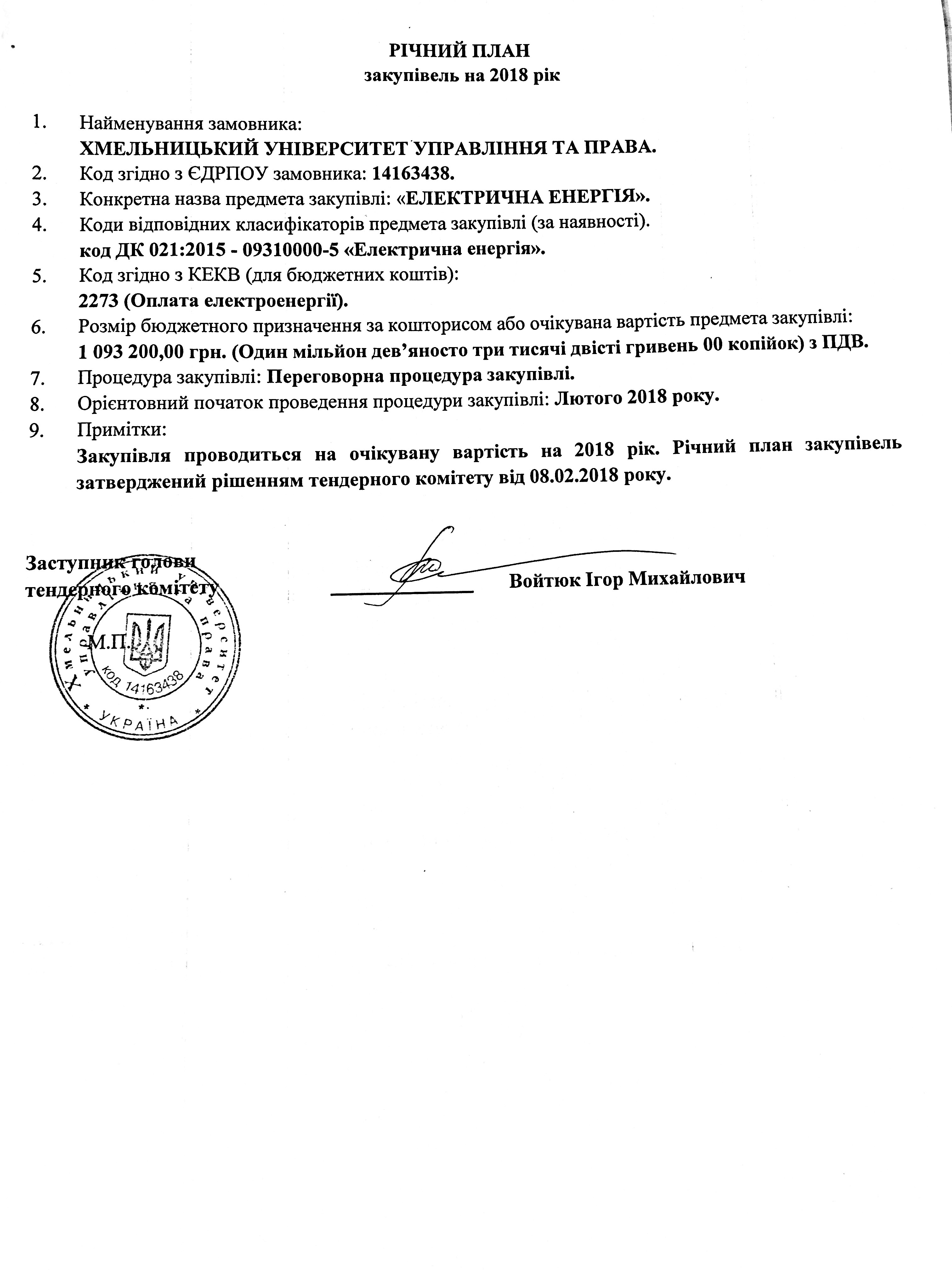 • Річний план закупівель на 2021 рік (Електроенергія)