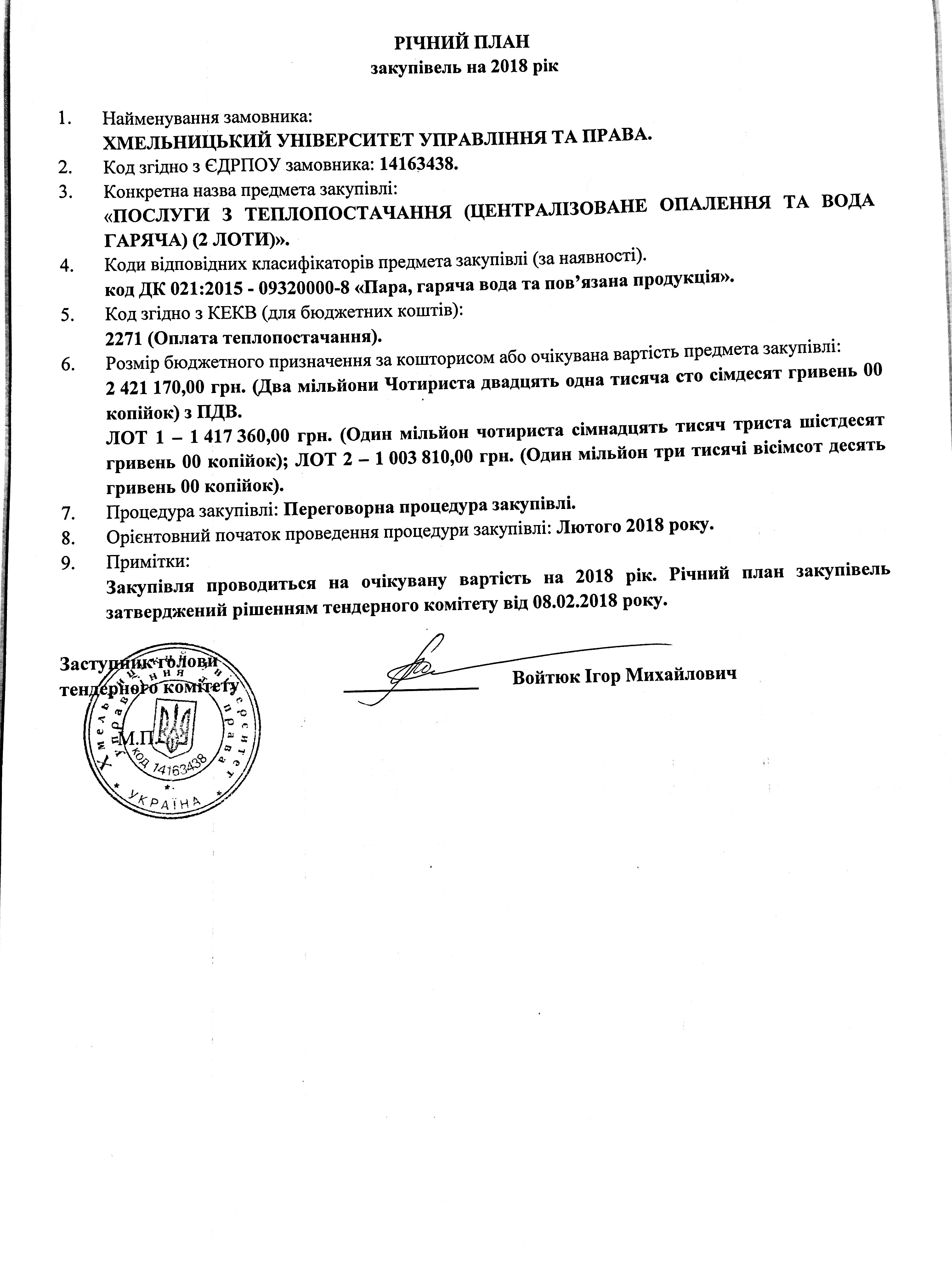 • Річний план закупівель на 2021 рік (Теплопостачання)