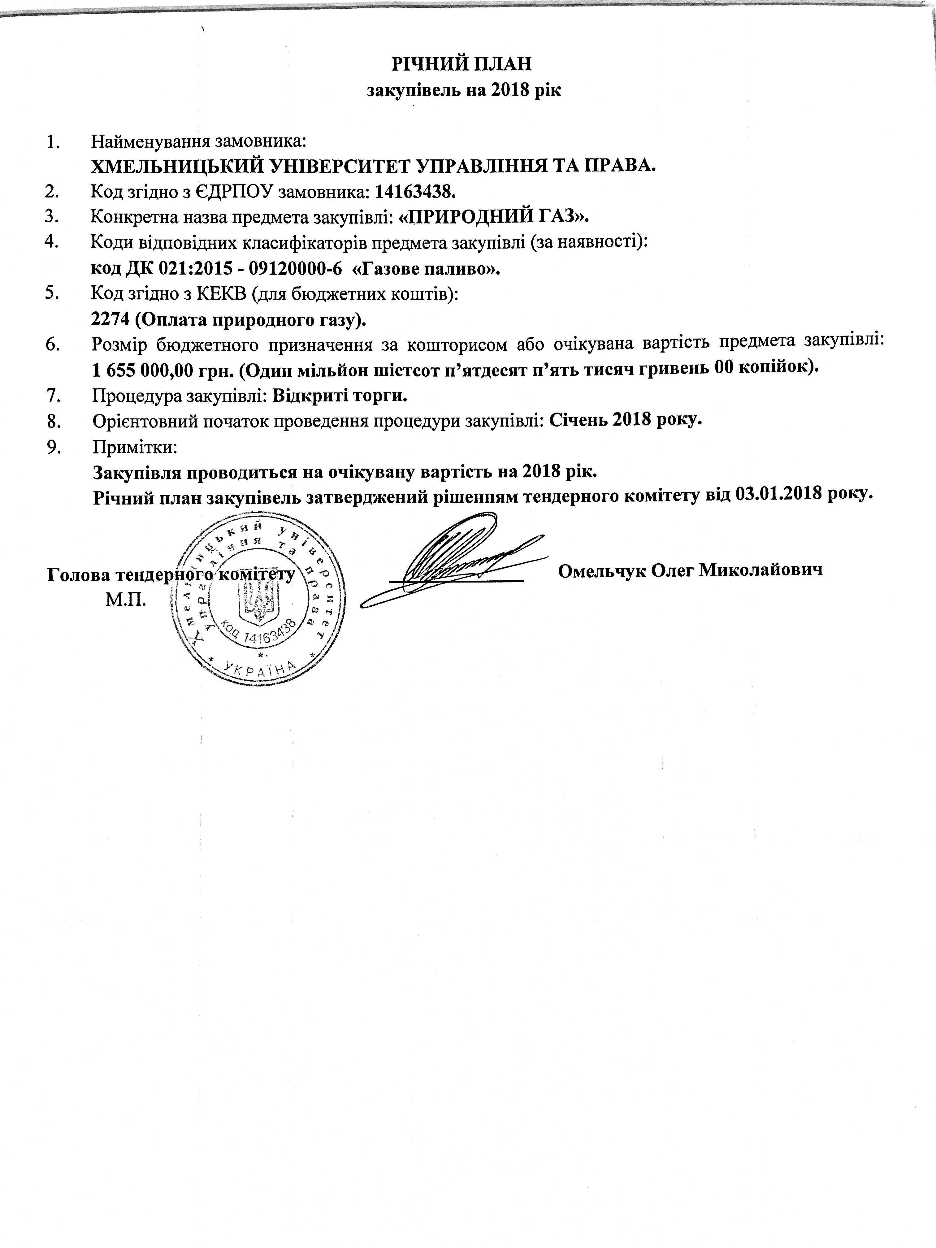 • Річний план закупівель на 2020 рік (Встановлення автоматичної пожежної сигналізації)